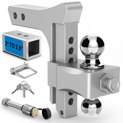 Adjustable Trailer Hitch – Heavy Duty Drop Hitch Fits 2 Inch Receiver, (Max 21,500 LBS GTW), Aluminum Tow Hitches 6-Inch Drop/Rise, (2” and 2-5/16”) Tow Balls, Truck Hitch Ball Mount